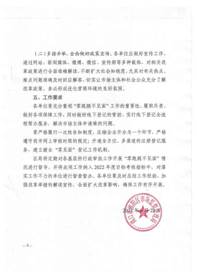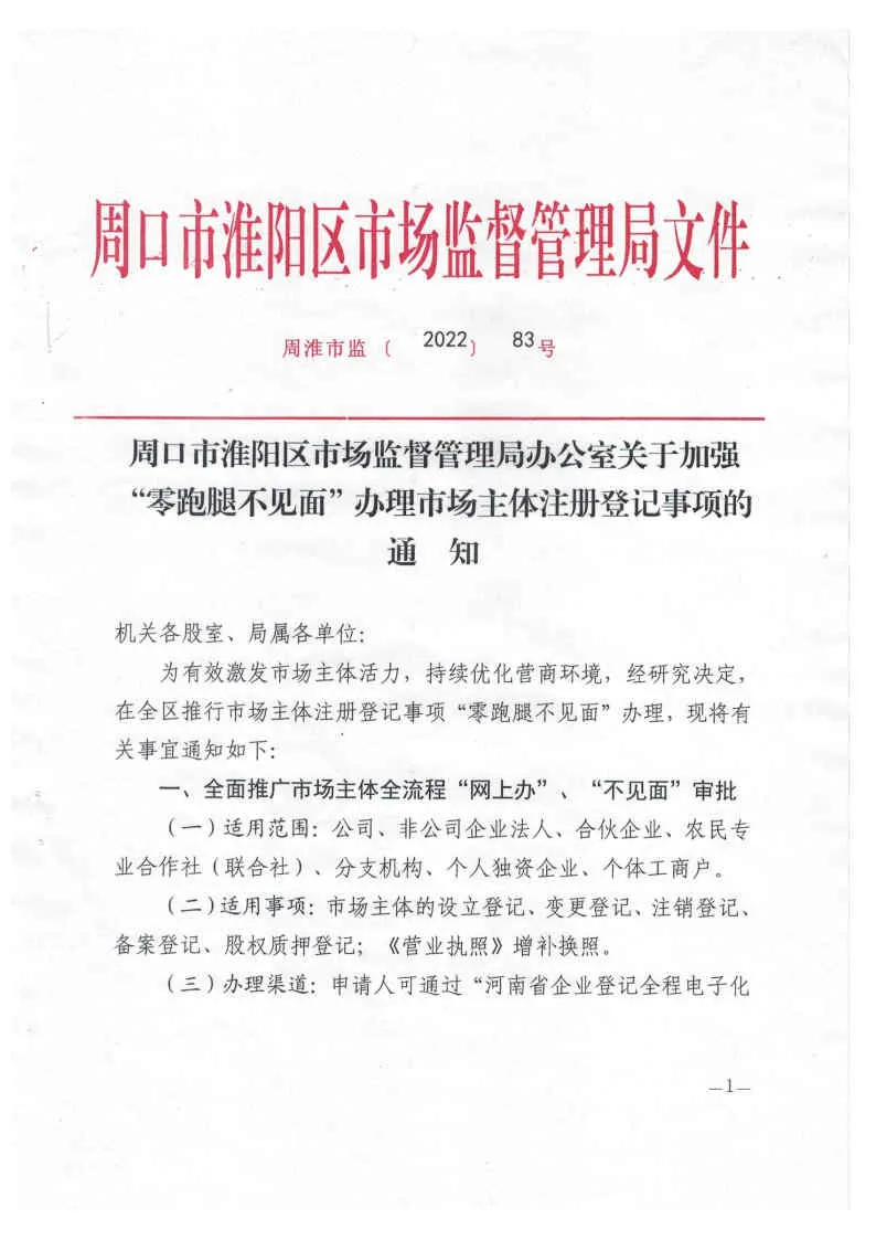 周口市准阳区市场监督管理局办公室关于加强“零跑腿不见面”办理市场主体注册登记事项的通知