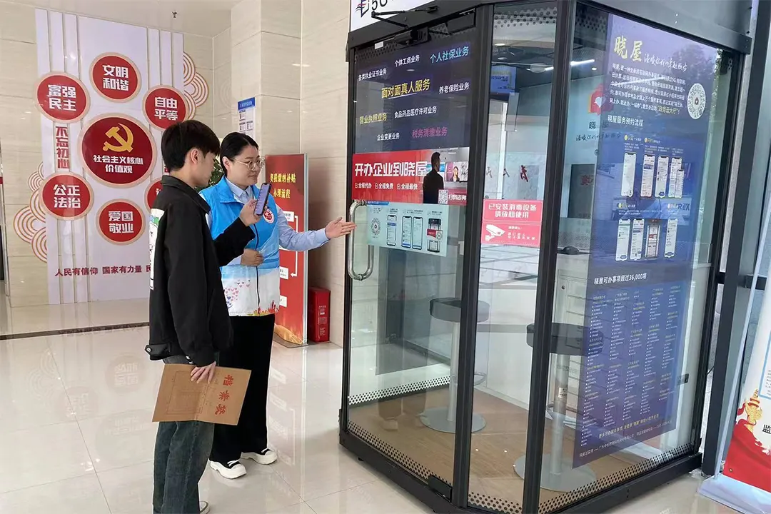 在全省率先推出“政务晓屋”智慧政务新模式,利用5G技术打造的全国一体化“共享式”资源整合平台,以不见面、非接触、云端批的方式,为企业和群众提供远程“面对面”政务服务,涵盖人社、税务、医保等部门事项,还可以连线北京、广东、浙江等全国14个省份29个市办理跨省业务3.5万余项。