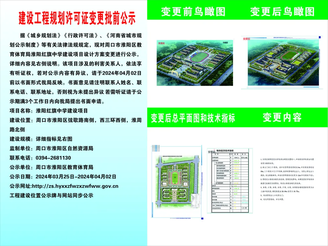 建设工程规划许可证批前公示--淮阳红旗中学建设项目