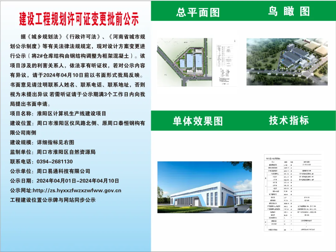 建设工程规划许可证批前公示--淮阳区计算机生产线建设项目