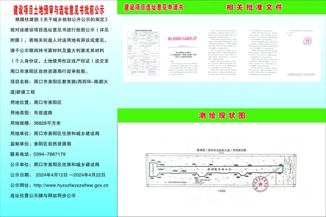 建设项目土地预审与选址意见书批前公示-周口市淮阳区教育路(西四环-陈都大道)新建工程
