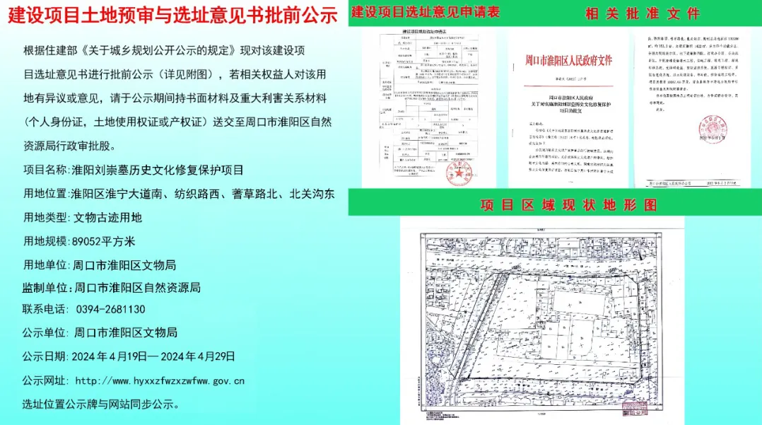 建设项目土地预审与选址意见书批前公示-淮阳刘崇墓历史文化修复保护项目