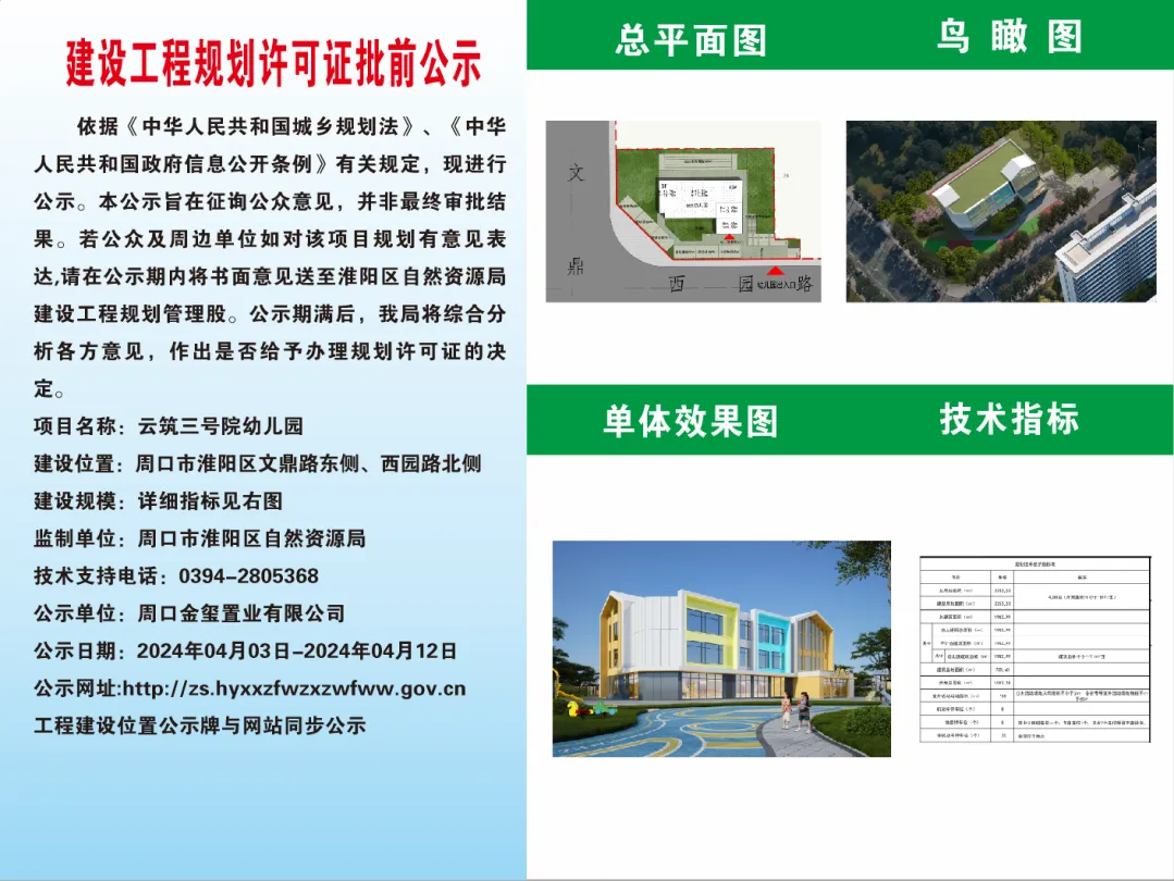 建设工程规划许可证批前公示--云筑三号院幼儿园