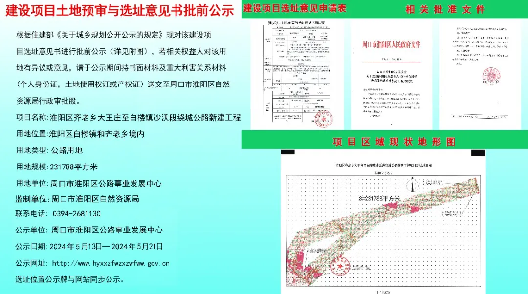 建设项目土地预审与选址意见书批前公示-淮阳区齐老乡大王庄至自楼镇沙沃段绕城公路新建工程