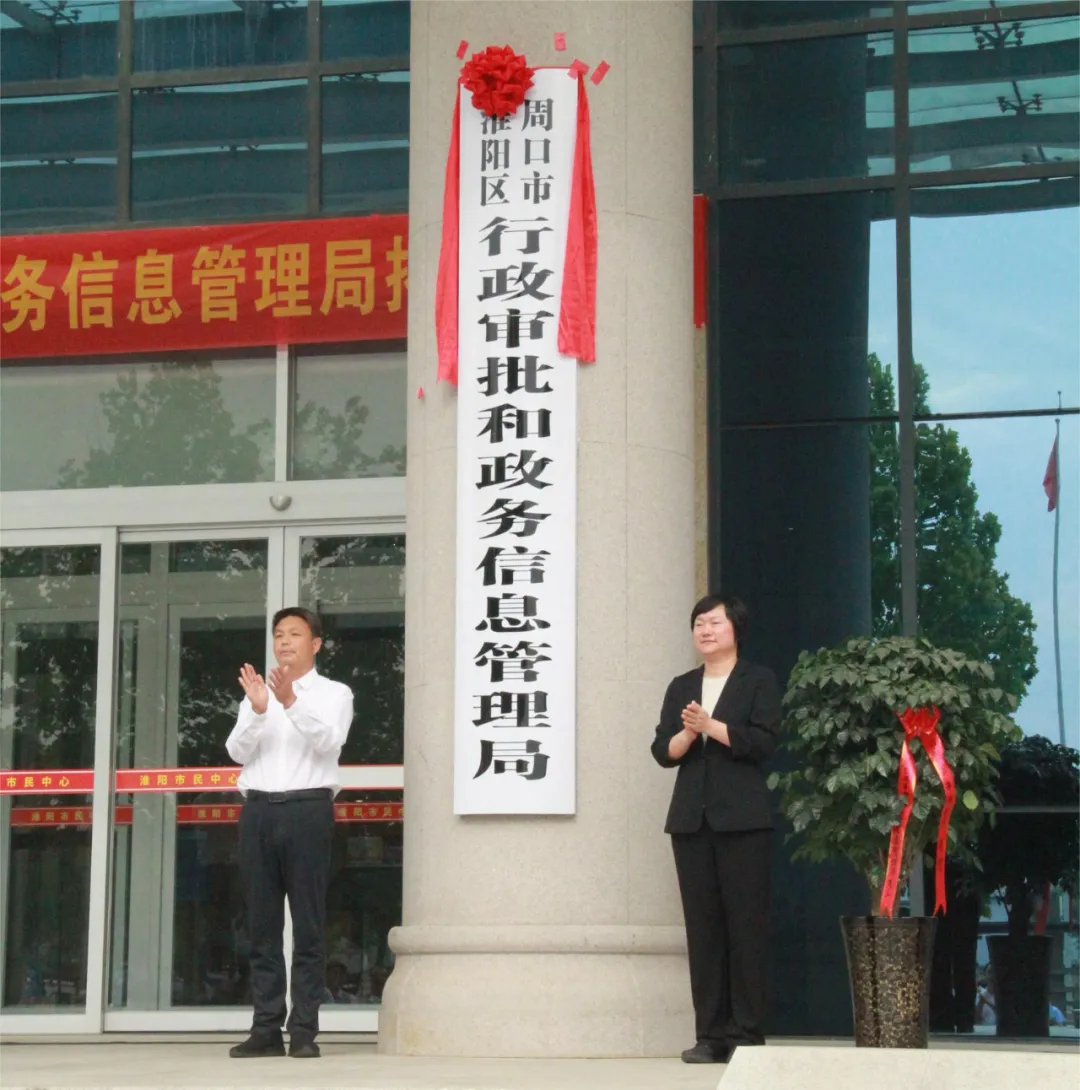 5月30日,周口市淮阳区行政审批和政务信息管理局更名揭牌仪式举行。区委常委、纪委书记、监委主任李启明,区委常委、常务副区长张丽娜出席仪式并揭牌,区行政审批和政务信息管理局班子成员、全体干部职工和窗口单位首席审批员、窗口负责人参加仪式。