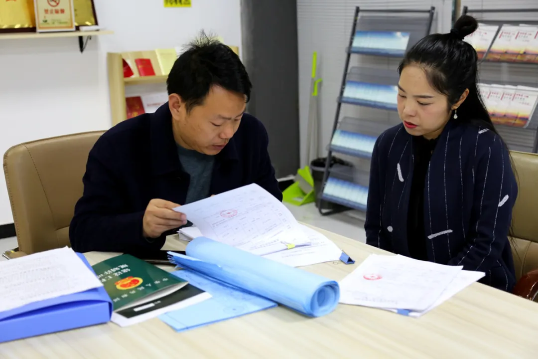 工作人员到利达建设工程有限公司办理相关手续 王楠楠 摄