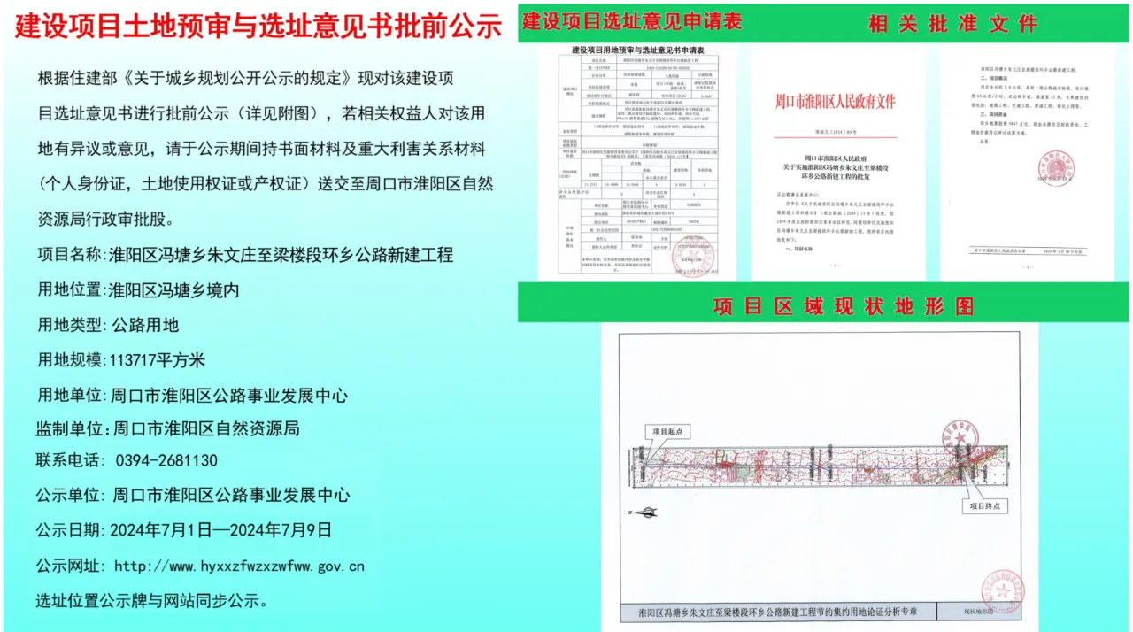 建设项目土地预审与选址意见书批前公示-淮阳区冯塘乡朱文庄至梁楼段环乡公路新建工程