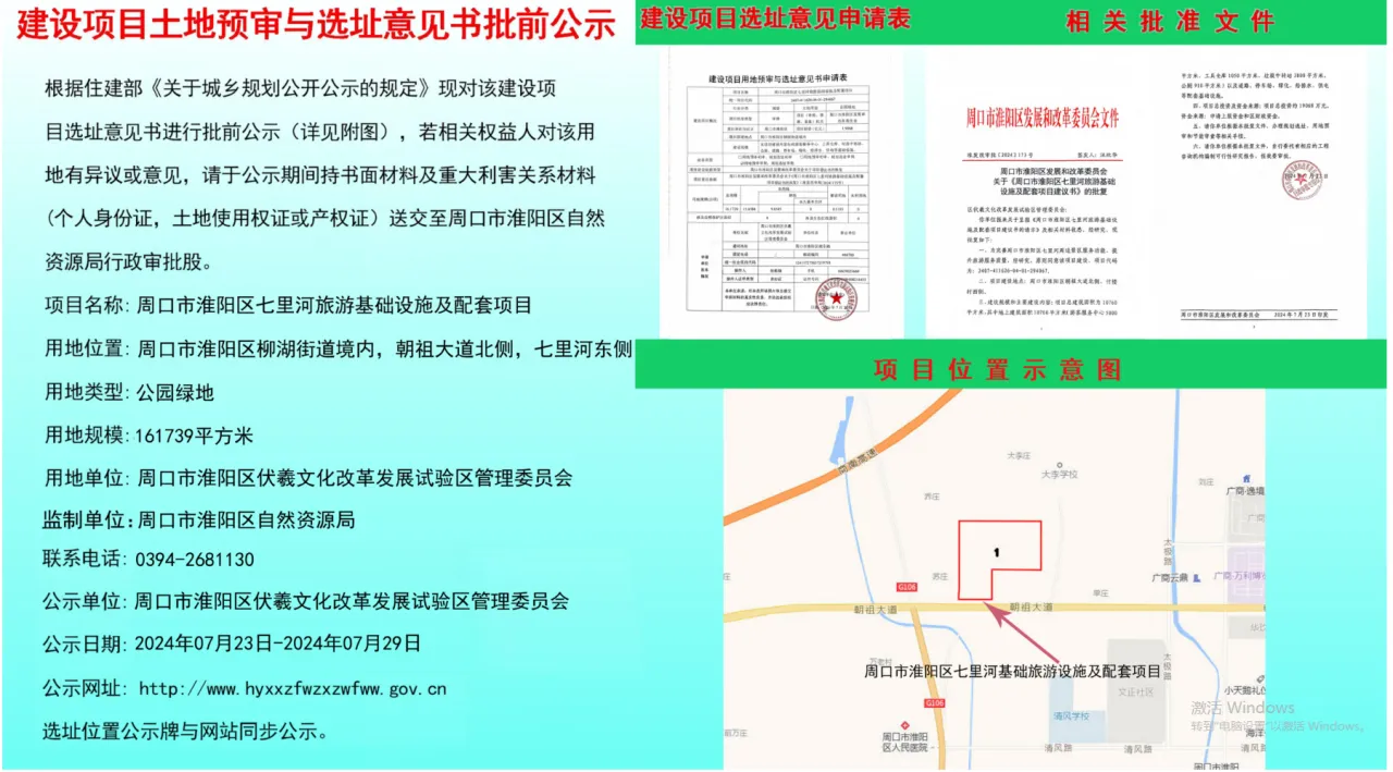 建设项目土地预审与选址意见书批前公示-周口市淮阳区七里河旅游基础设施及配套项目