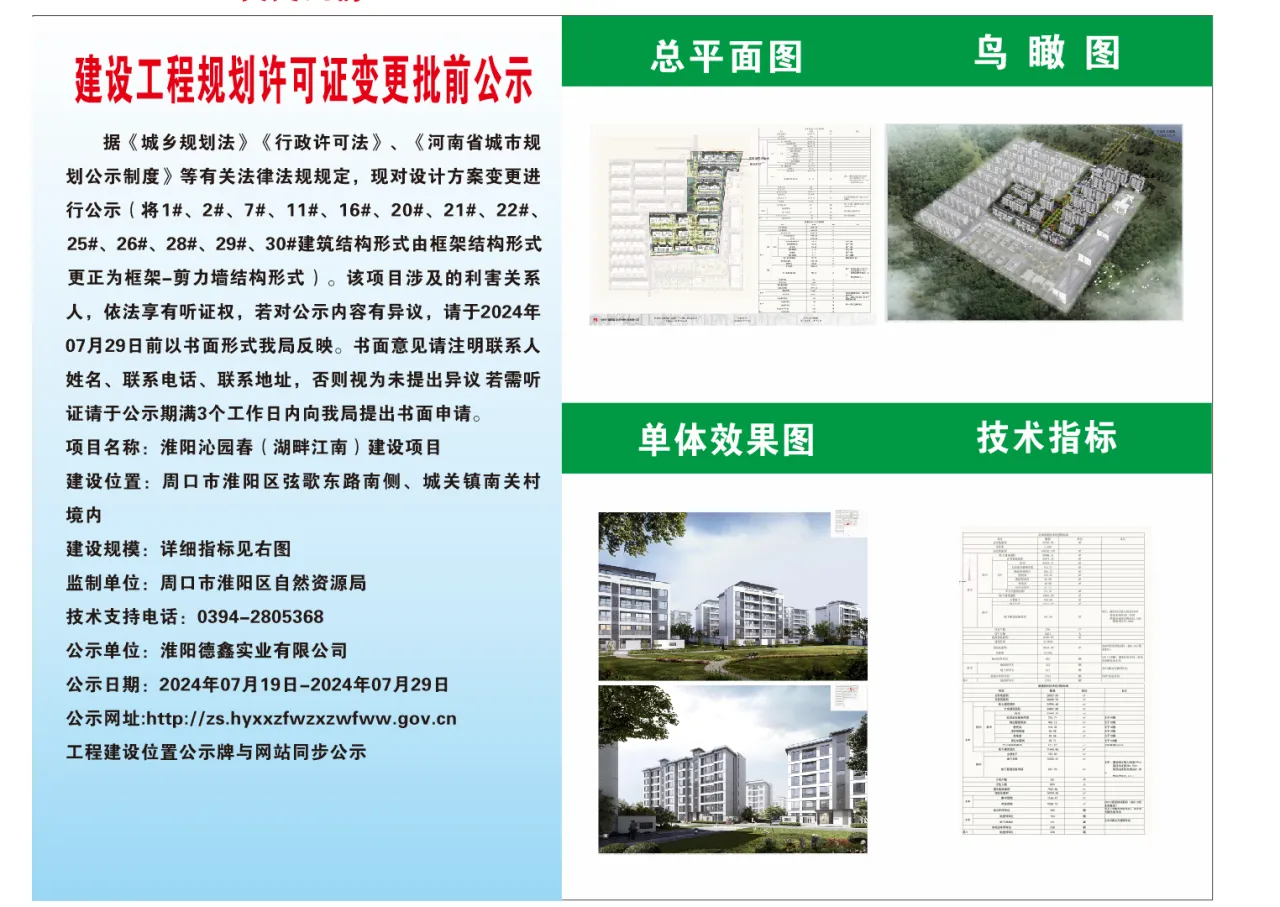 建设工程规划许可证变更批前公示--淮阳沁园春(湖畔江南)建设项目