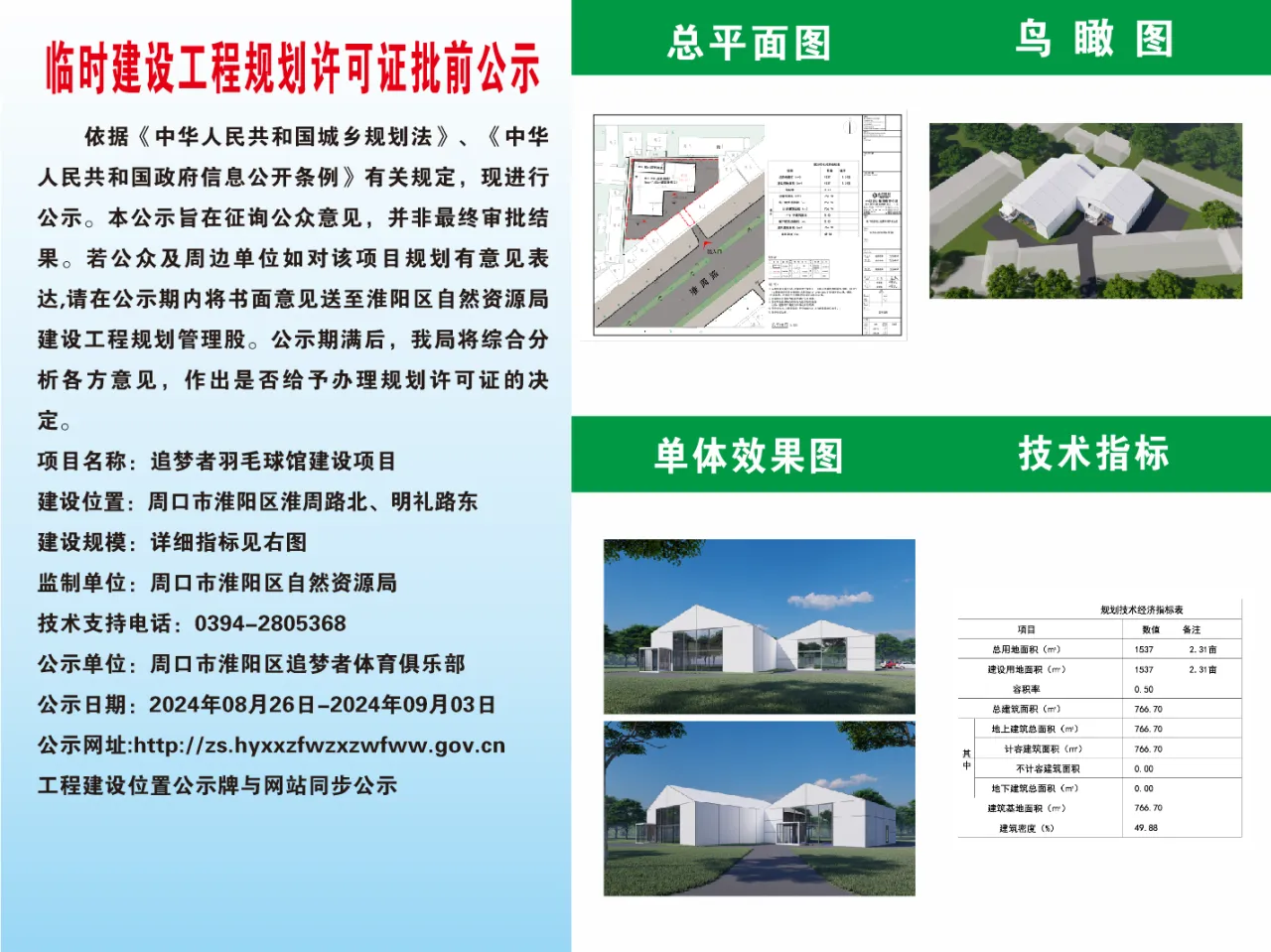 建设工程规划许可证批前公示--追梦者羽毛球馆建设项目