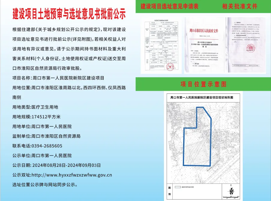 建设项目土地预审与选址意见书批前公示-周口市第一人民医院新院区建设项目