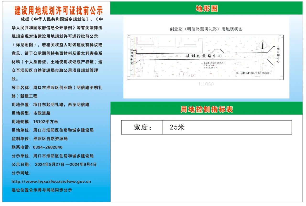 建设用地规划许可证批前公示周口市淮阳区创业路(明信路至明礼路)新建工程