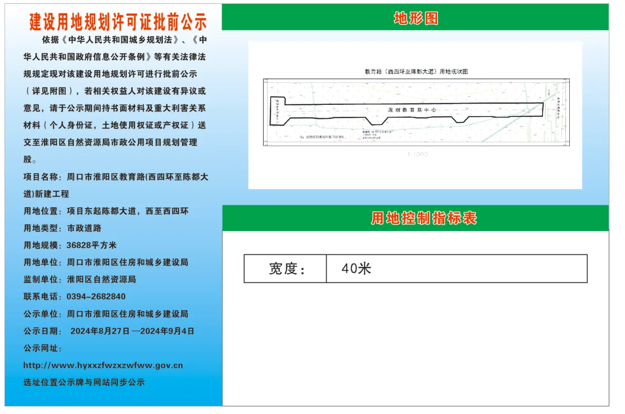 建设用地规划许可证批前公示周口市淮阳区教育路(西四环至陈都大道)新建工程