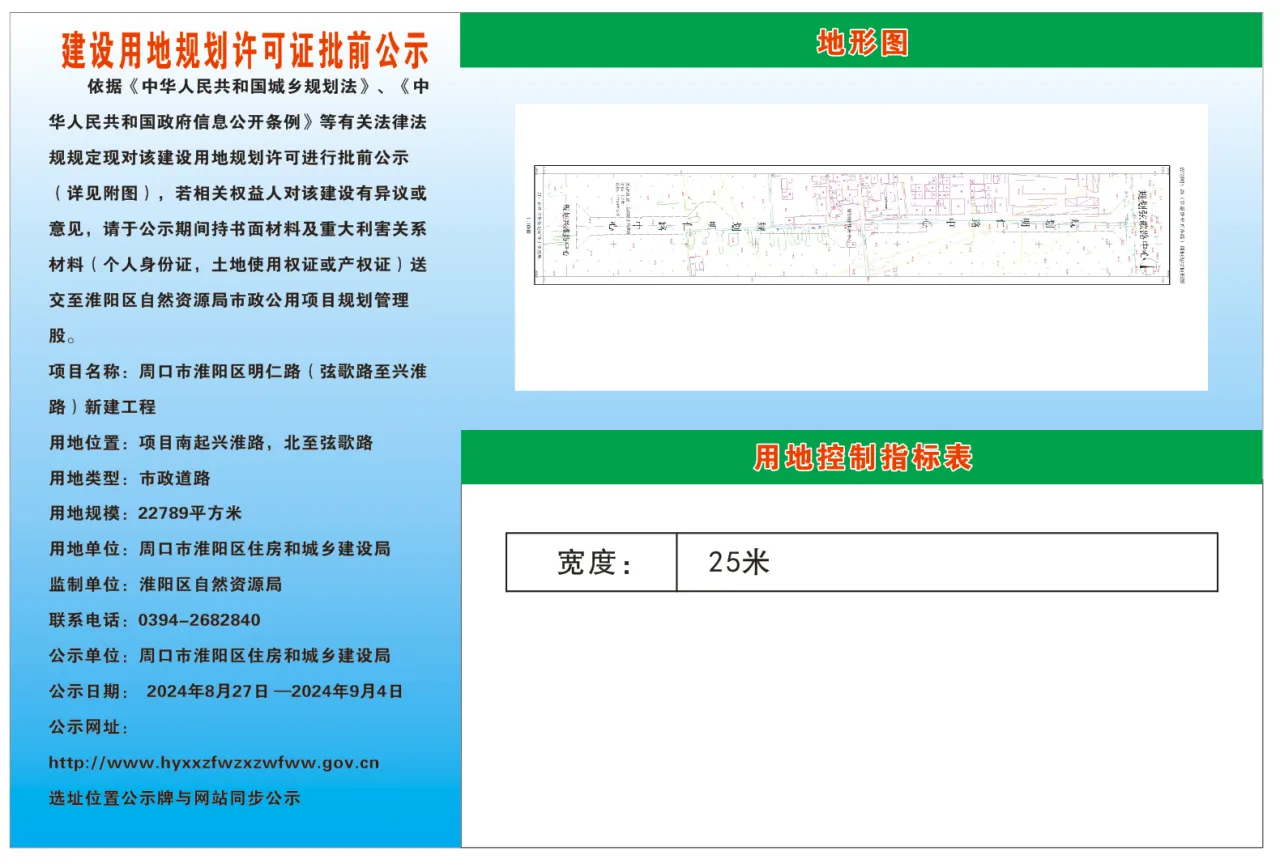 建设用地规划许可证批前公示周口市淮阳区明仁路(弦歌路至兴淮路)新建工程