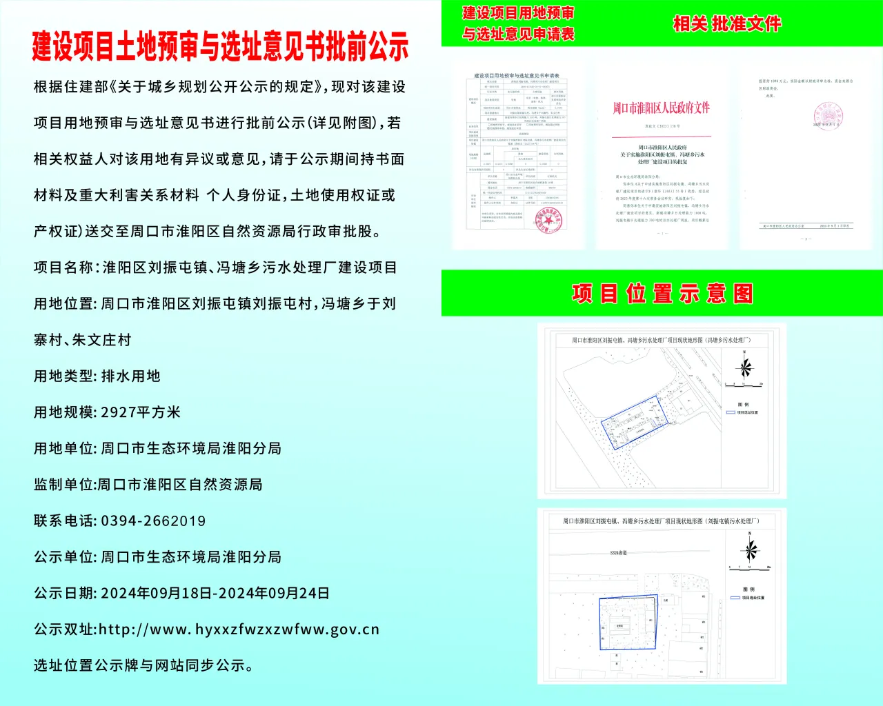 建设项目土地预审与选址意见书批前公示-淮阳区刘振屯镇、冯塘乡污水处理厂建设项目