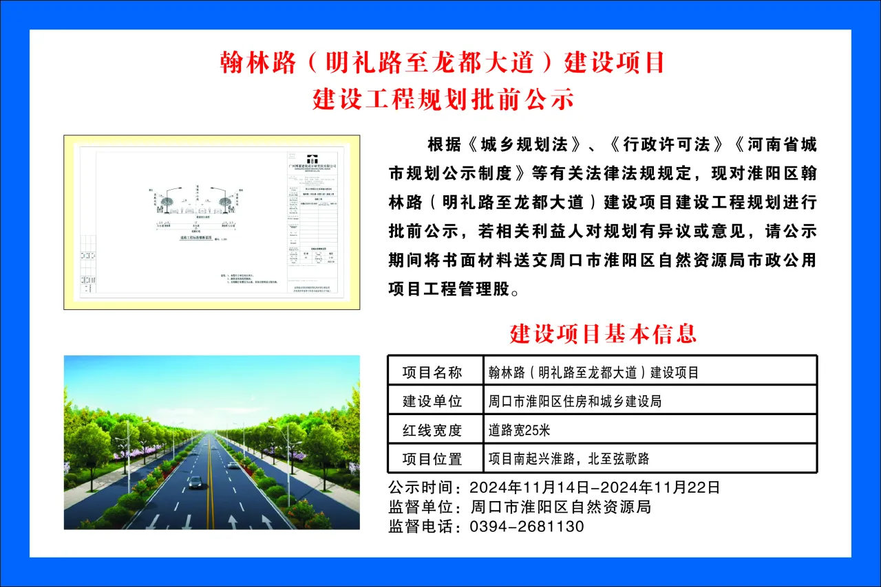 建设工程规划许可批前公示—翰林路(明礼路至龙都大道)建设项目