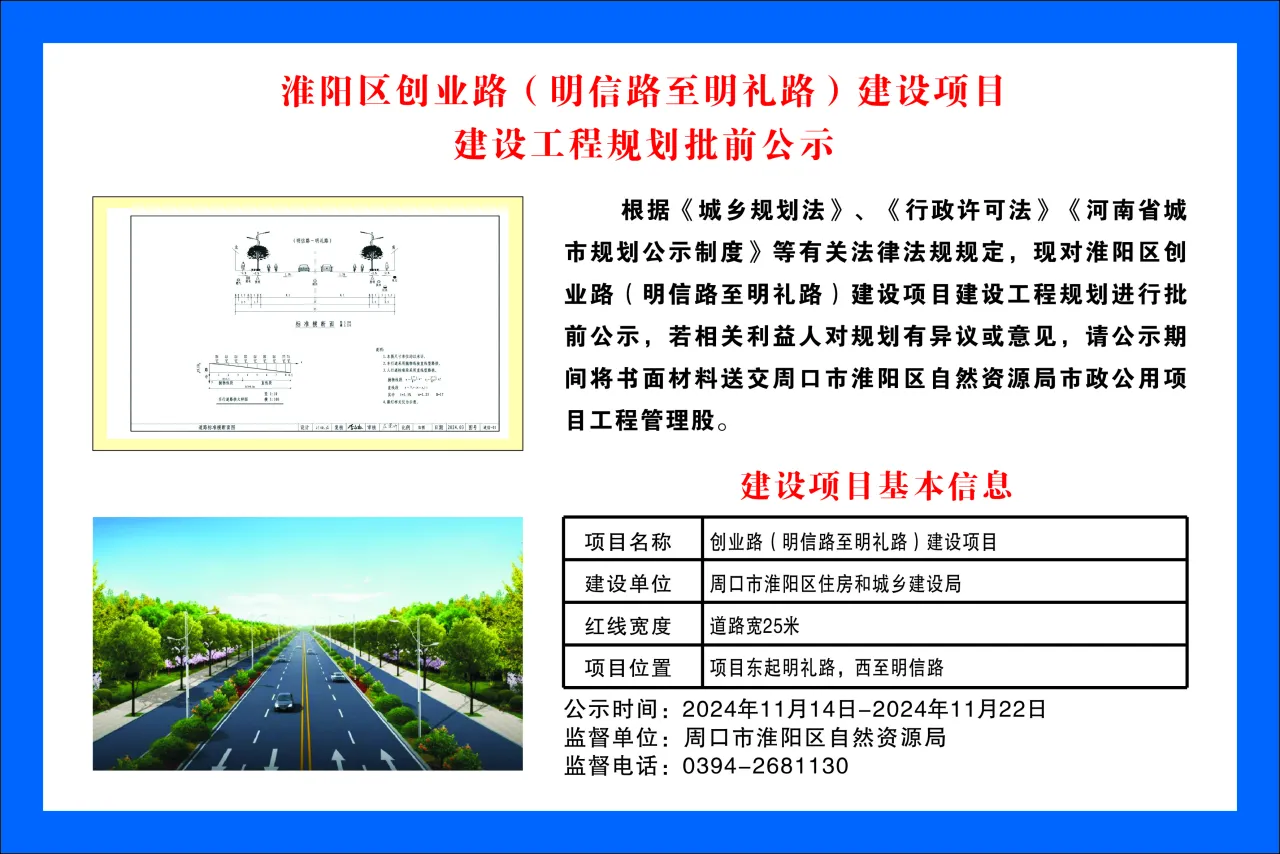 建设工程规划许可批前公示—淮阳区创业路(明信路至明礼路)建设项目
