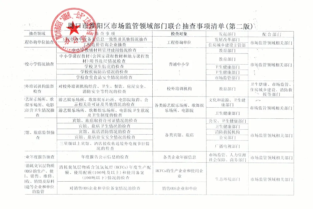 1、周口市淮阳区市场监管领域部门联合抽查事项清单(第二版).pdf