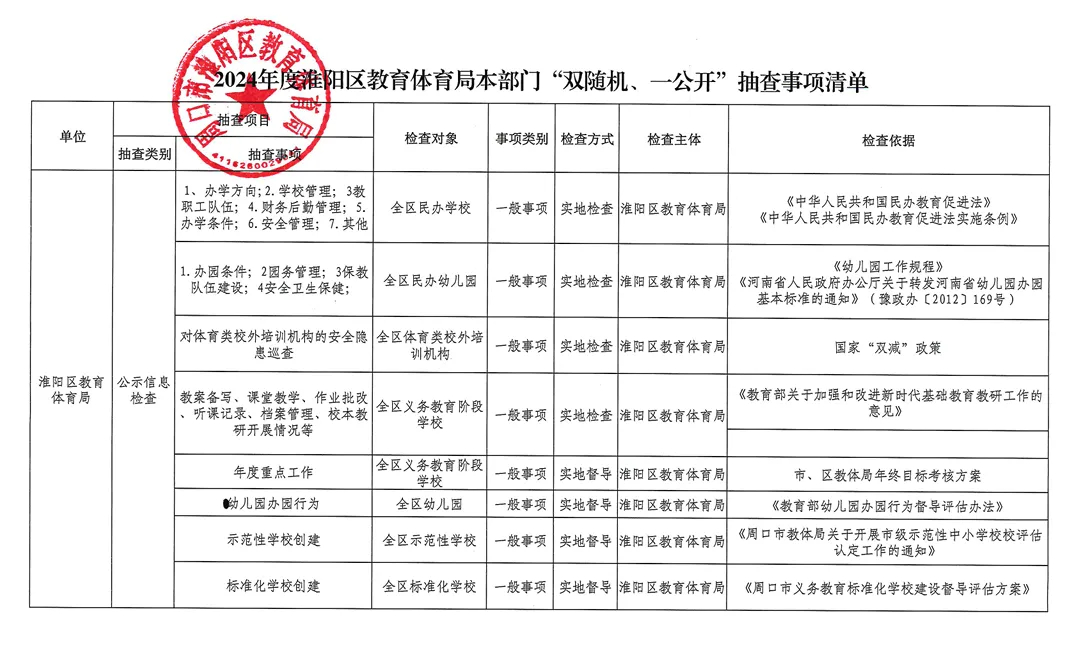 1、2024年度淮阳区教育体育局随机抽查事项(2024.3.18).pdf