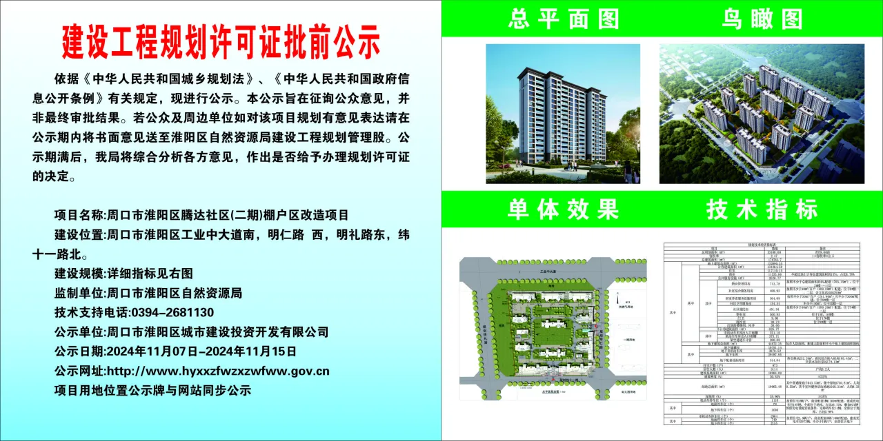 建设工程规划许可证批前公示-周口市淮阳区腾达社区(二期)棚户区改造项目