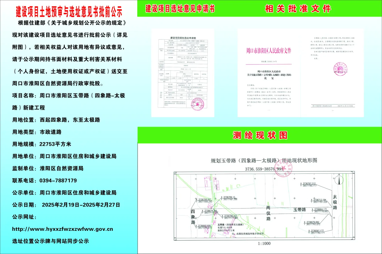 建设项目土地预审与选址意见书批前公示-周口市淮阳区玉带路(四象路-太极路)新建工程