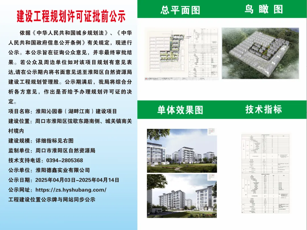建设工程规划许可证批前公示-淮阳沁园春(湖畔江南)建设项目