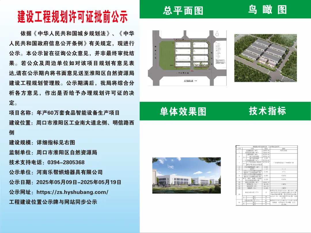 建设工程规划许可证批前公示-年产60万套食品智能设备生产项目