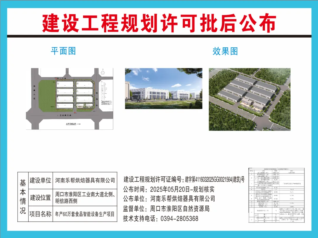 建设工程规划许可批后公布-年产60万套食品智能设备生产项目