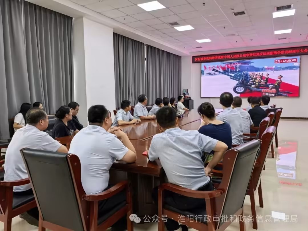 9月3日上午,淮阳区行政审批和政务信息管理局组织全体干部、党员及职工,集中收听收看纪念中国人民抗日战争暨世界反法西斯战争胜利八十周年大会。